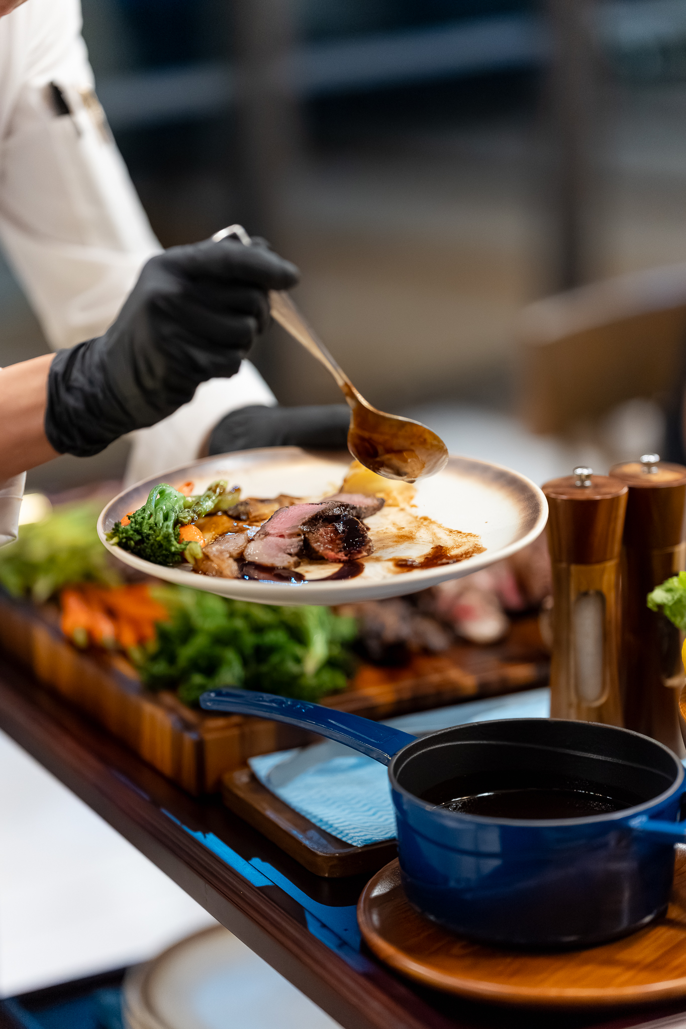 A highlight at Stella is the Tableside Trolley service, where chefs prepare dishes live at the table, adding excitement and creating a memorable dining experience.