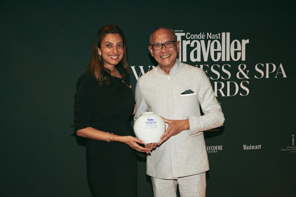 Chiva-Som Hua Hin, the world’s pioneer in transformative wellness, is honoured to have been named as the winner in the ‘Traditional Healing’ category at the 2025 Condé Nast Traveller Wellness & Spa Awards – the first such awards by Condé Nast Traveller Germany. The award reinforces Chiva-Som’s identity as a global leader in holistic wellness while honouring its dedication to preserving traditional healing practices and commitment to the comprehensive health and wellbeing of guests. Chiva-Som Hua Hin’s General Manager, Vaipanya Kongkwanyuen, received the award on behalf of the team at a ceremony held on 15th September 2025 at Schloss Elmau, Germany. The evening was attended by over 110 international guests, including globally renowned hospitality and wellness leaders.