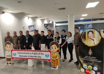 The delegation included Mr. Atichart Chaisri, Deputy Mayor of Hua Hin Municipality; Ms. Worakarn Thaworn, Deputy Director of TAT Prachuap (Hua Hin Office); Mr. Kitipong Siriphetkasem, President of the Hua Hin–Cha-am Tourism Business Association; Dr. Somchai Krajaatem, Chairman of the Prachuap Tourism Industry Council; Pol. Col. Yuthaphum Panlainak, Deputy Commander of Tourist Police Division 3; and Mr. Rattapol Charoenphon, Director of Hua Hin Airport.