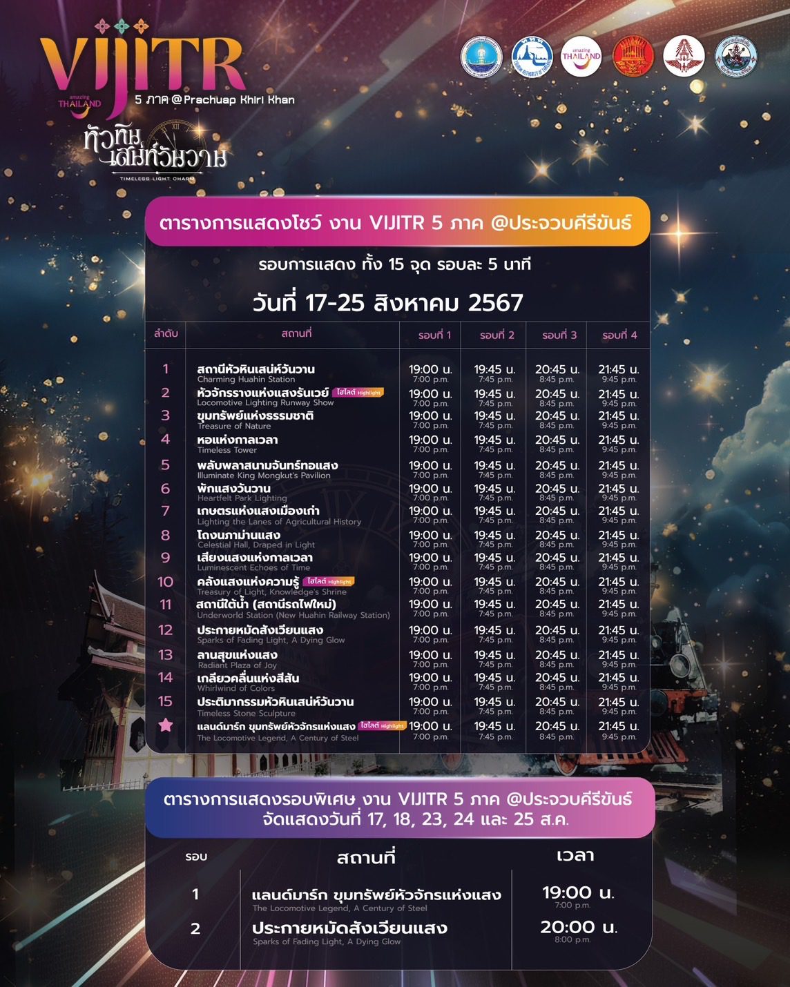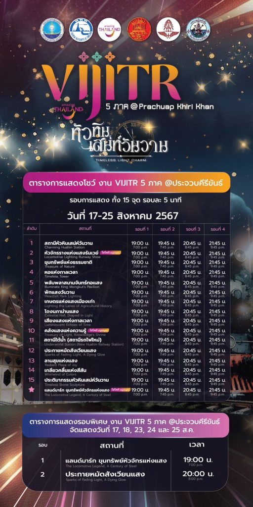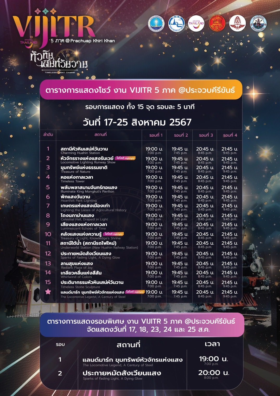 - Locomotive Lighting Runway Show: The century-old locomotive, a significant relic from World War II, will be transformed into a dazzling light spectacle at the Hua Hin Railway Station.
