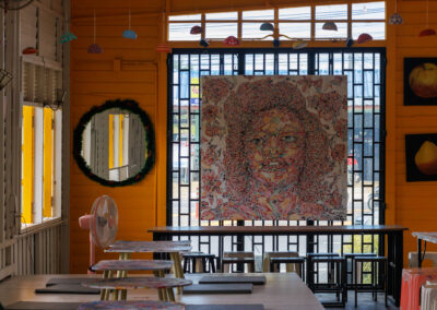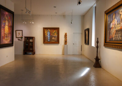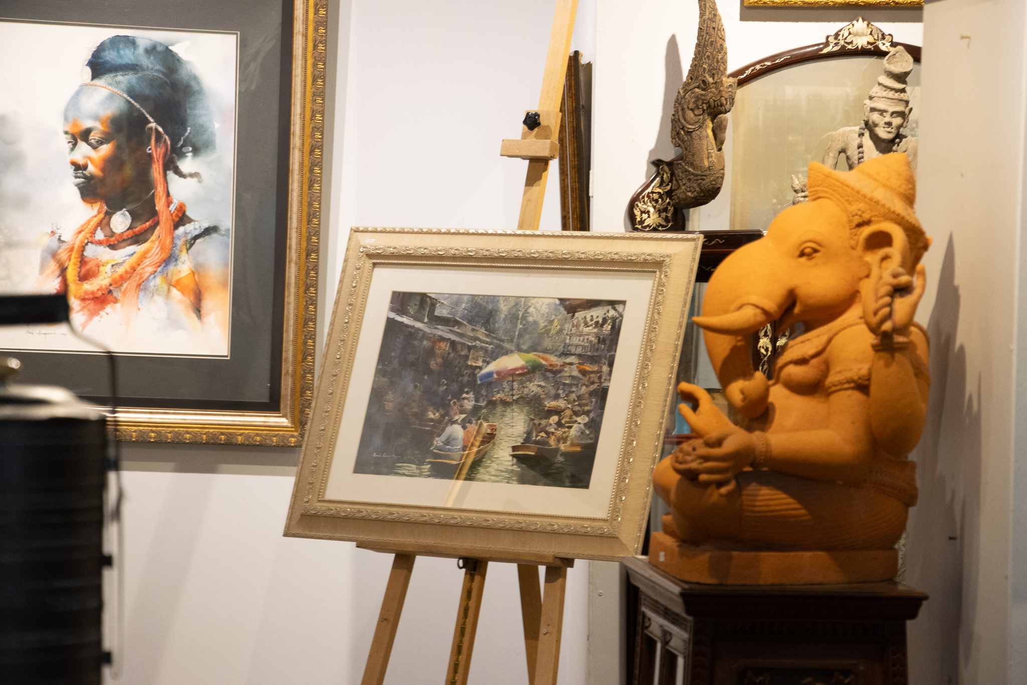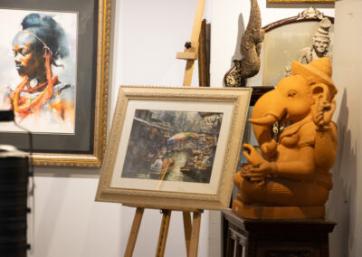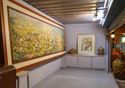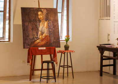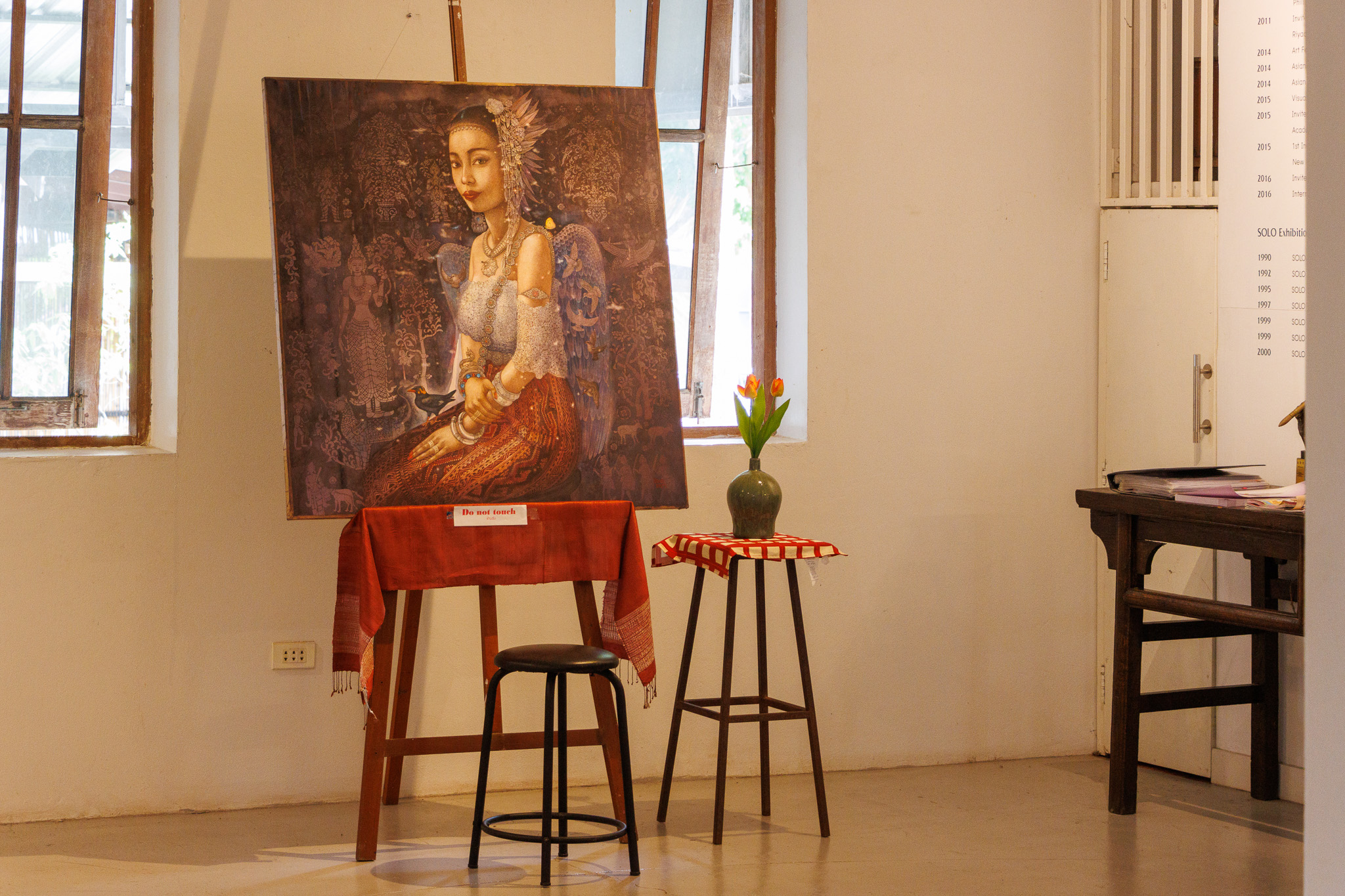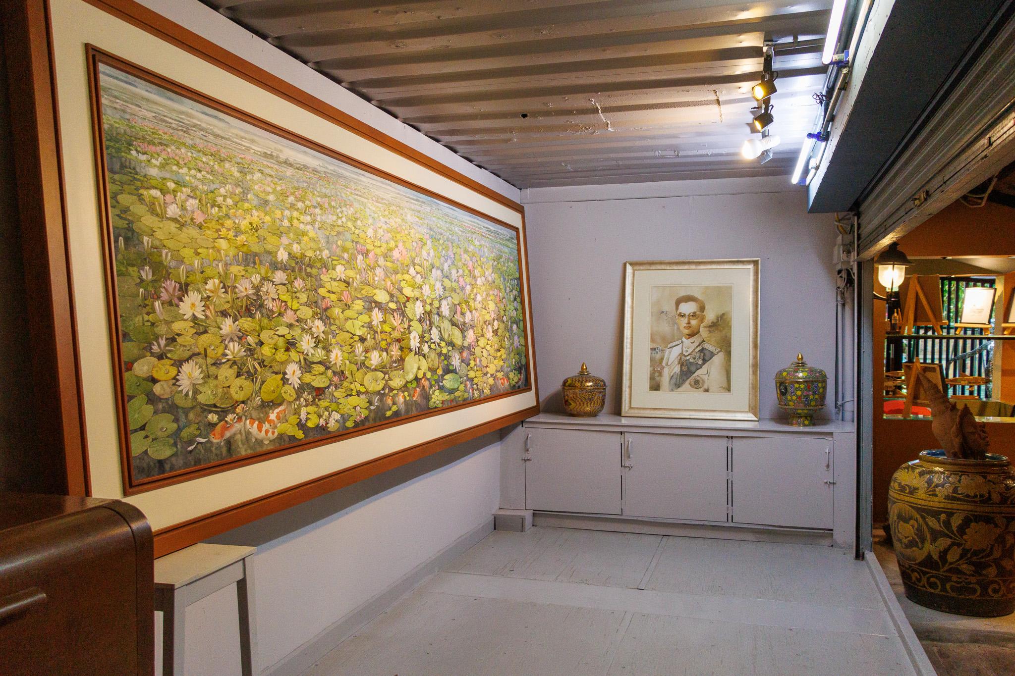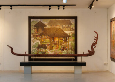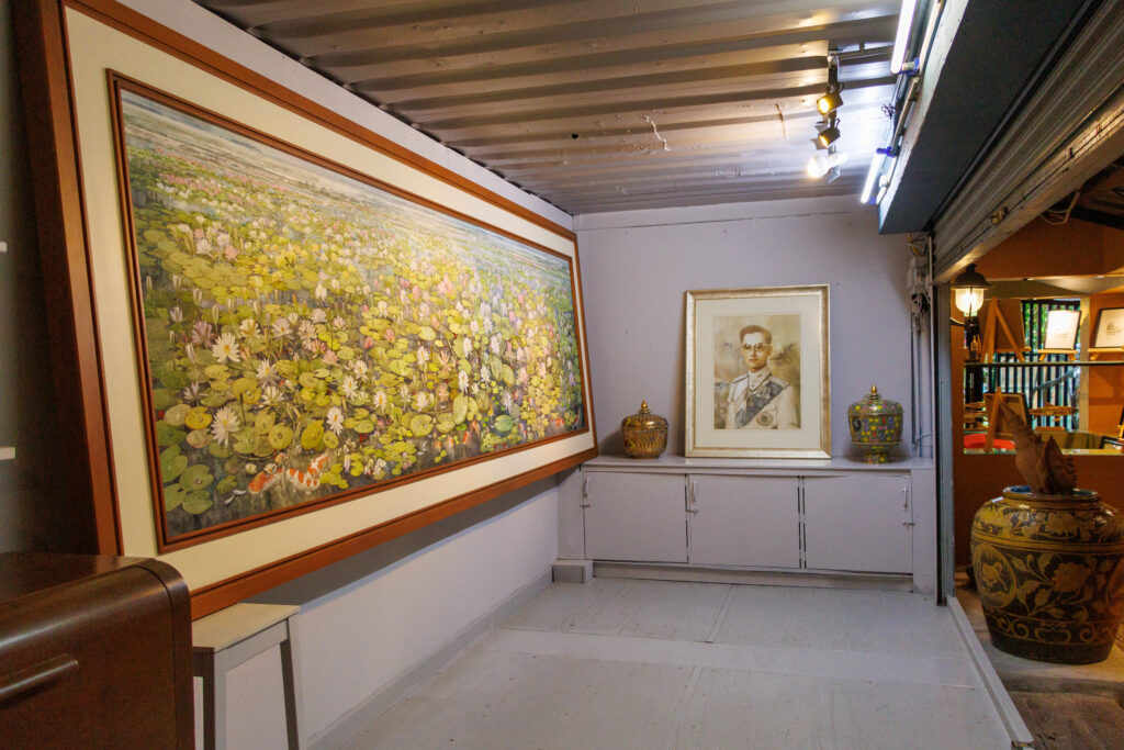 Visitors to Baan Sillapin can expect to find paintings in watercolour, oil and acrylic, alongside sculpture, wood carvings, antique collections, and handmade crafts. A standout feature is Professor Tawee’s own studio, which houses The Queen of Flowers Born from the Mud, the largest watercolour painting in Thailand at 400 x 110 cm.