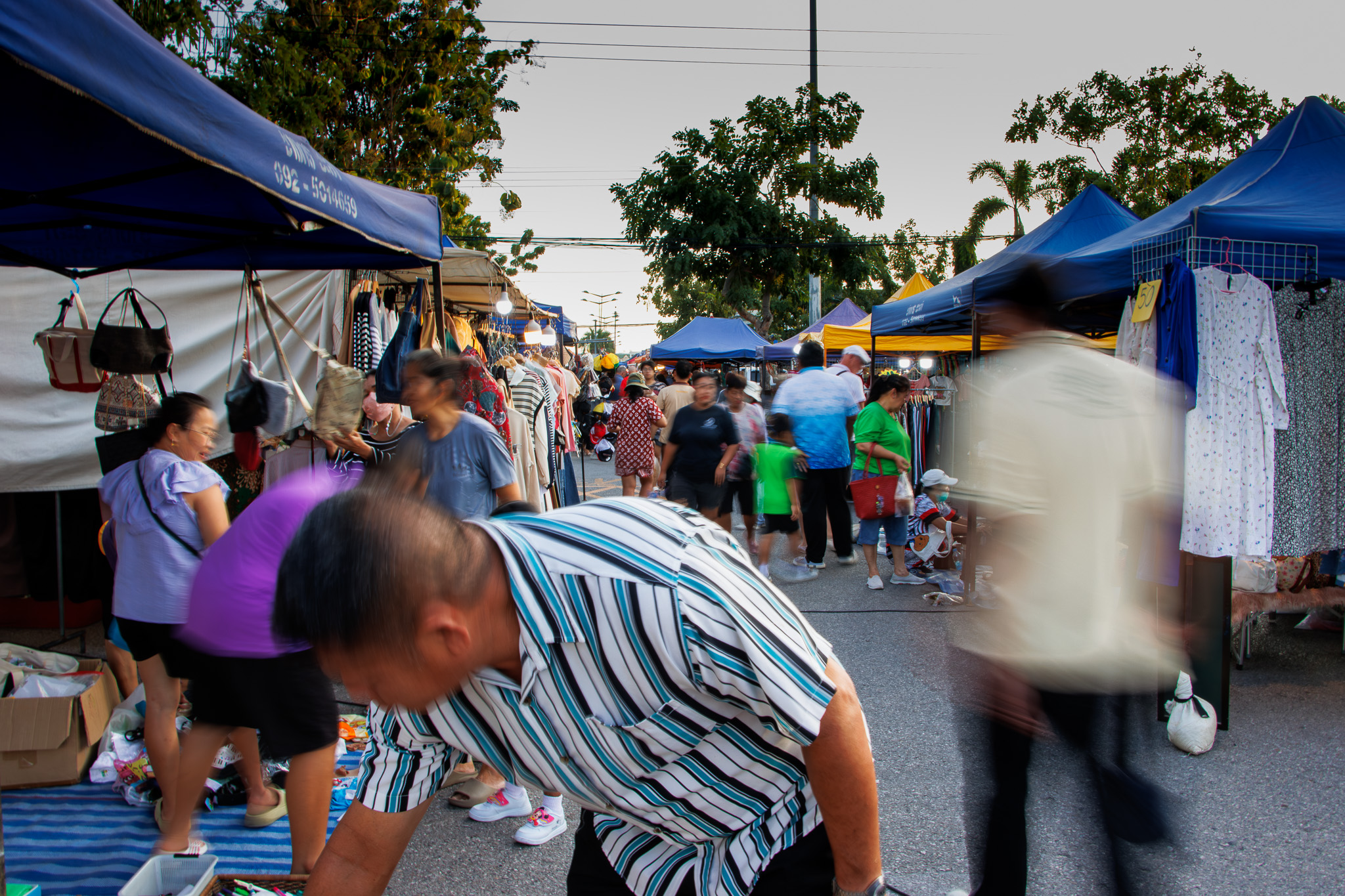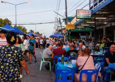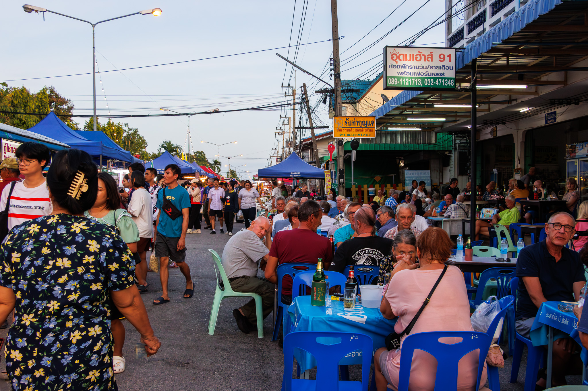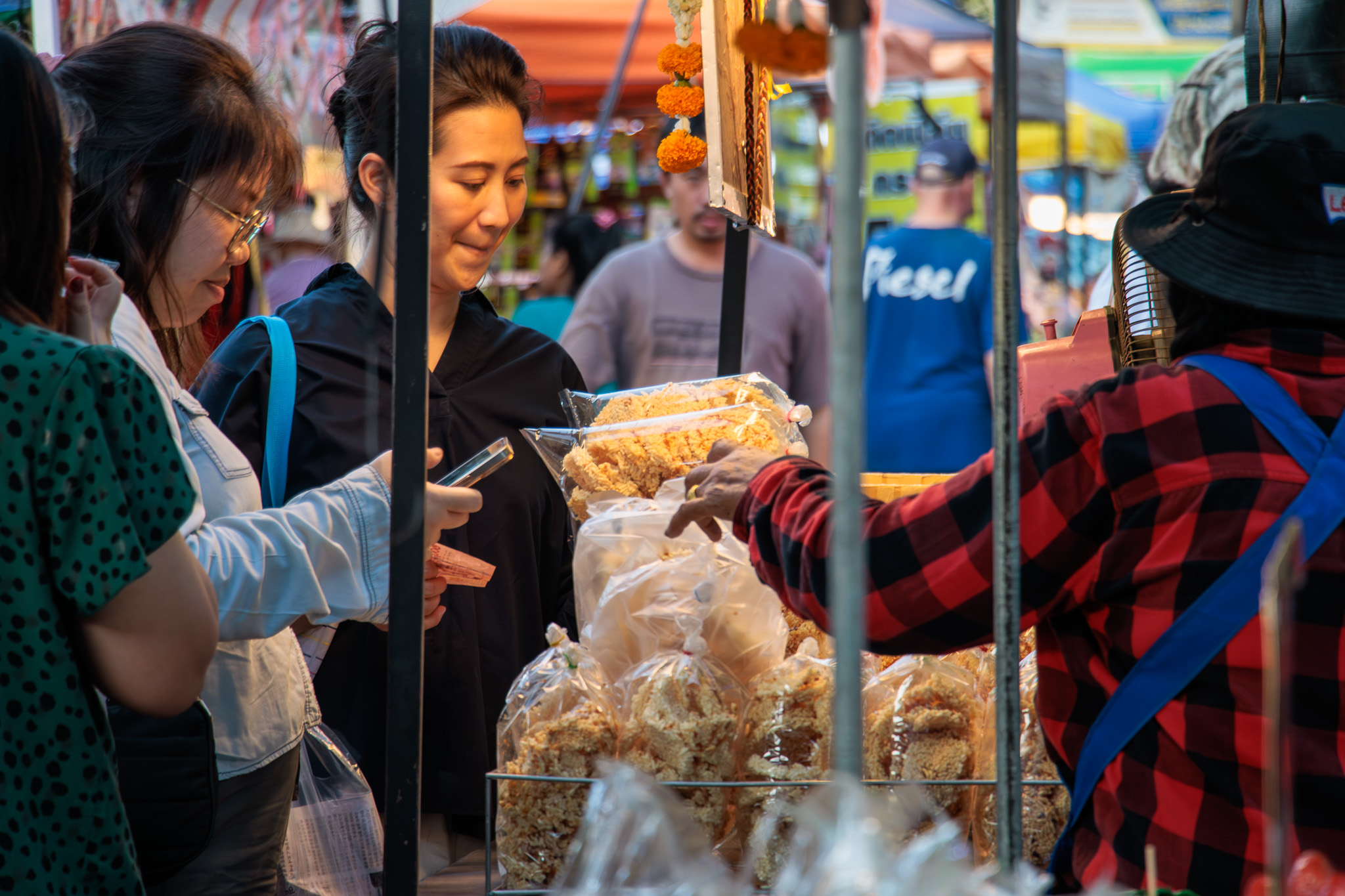 The event also draws in foreign tourists and expats, many of whom stop at casual bars and restaurants around the market’s edge. Some establishments set up barbeques offering burgers, German sausages, and hot dogs, giving visitors the option of combining Thai street food with more familiar fare.
