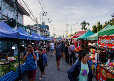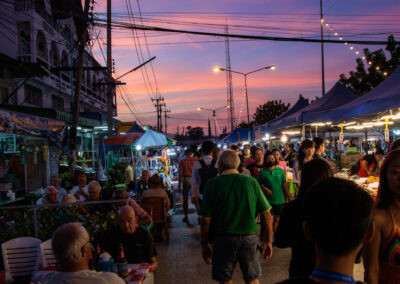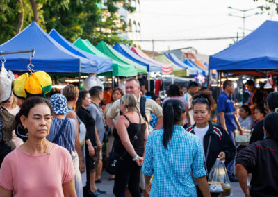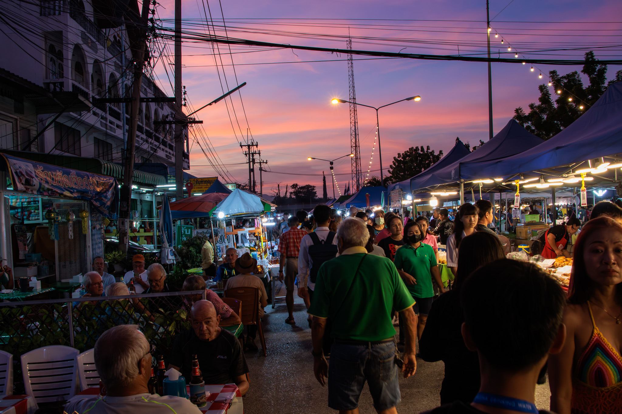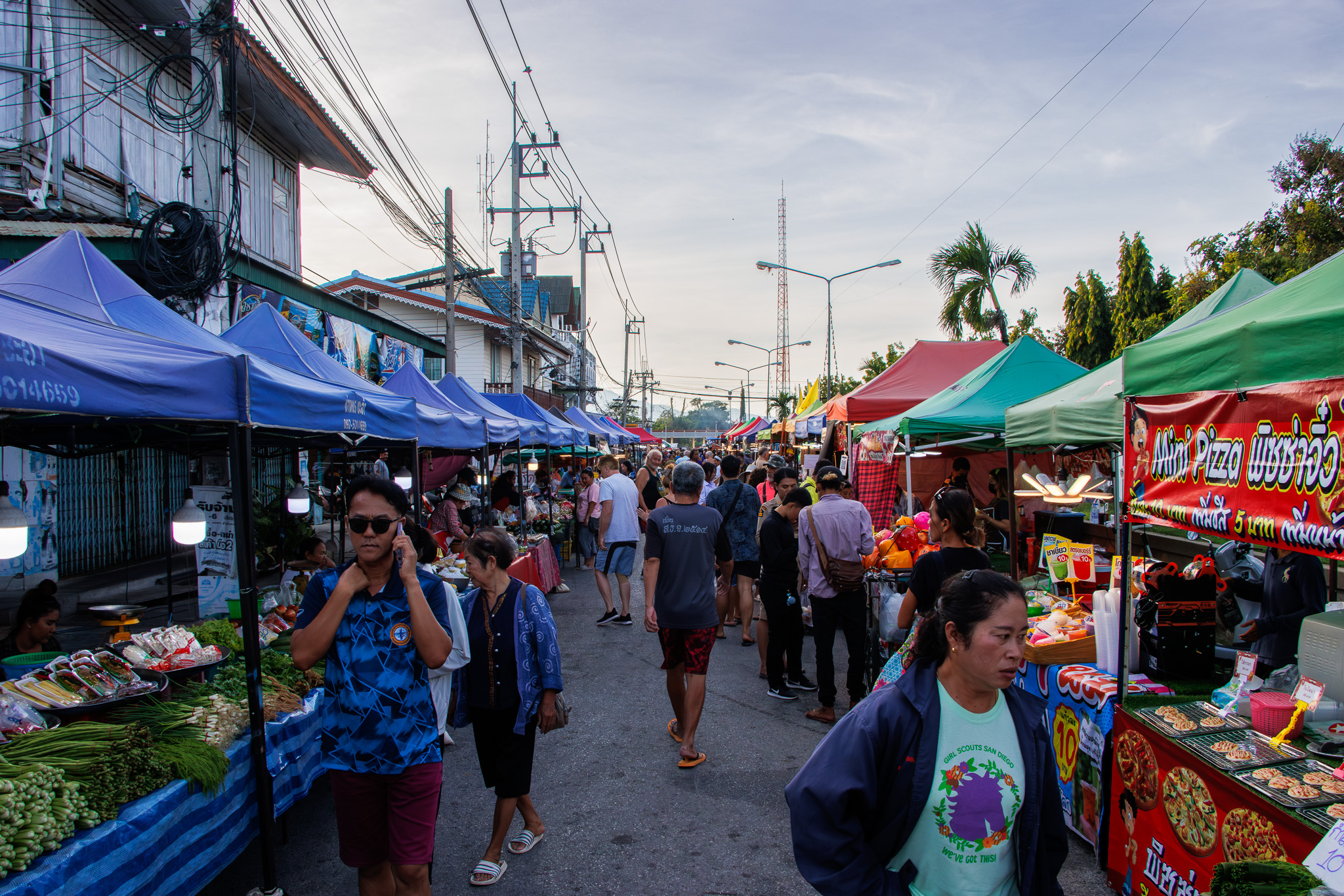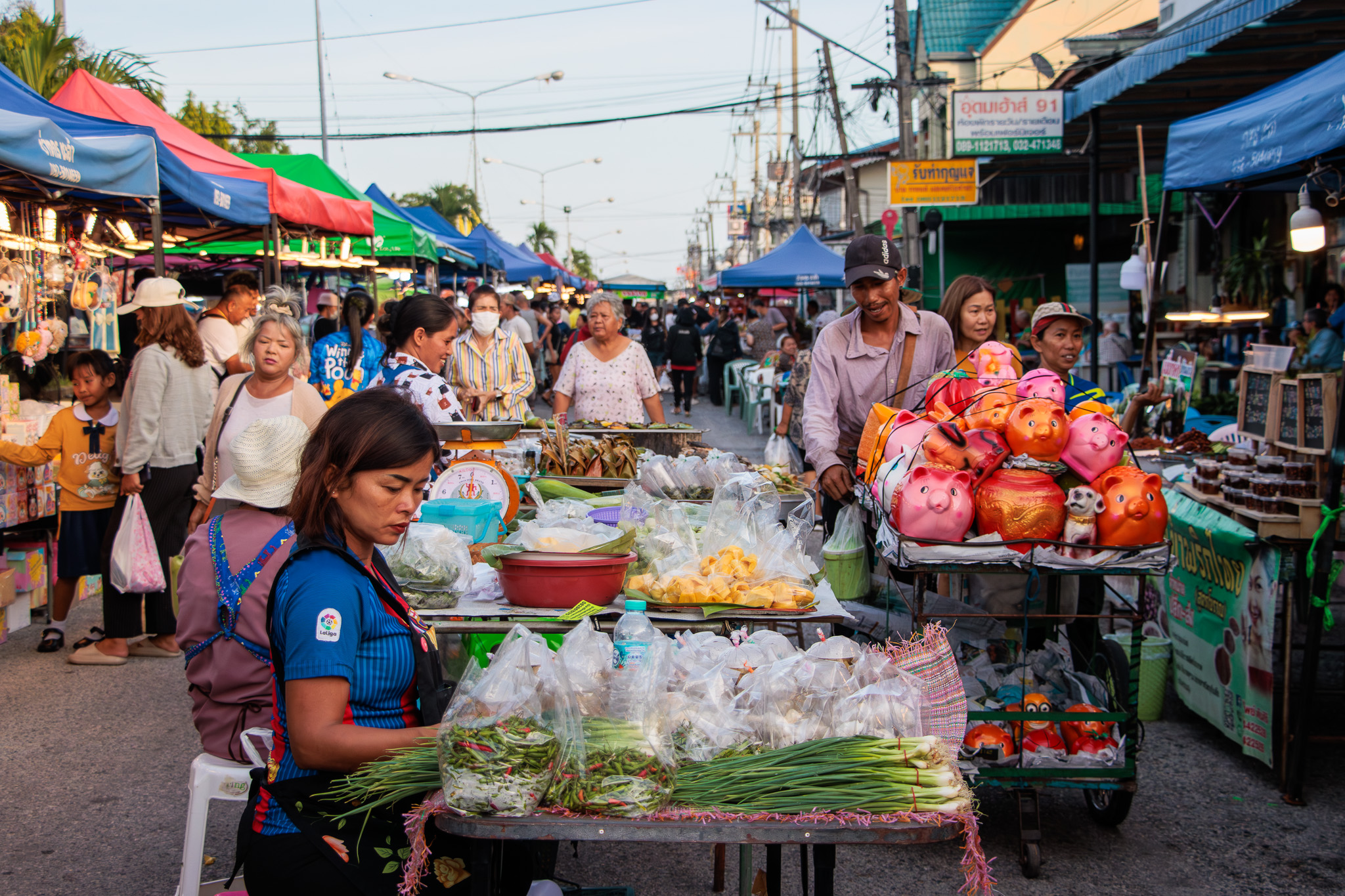 The event also draws in foreign tourists and expats, many of whom stop at casual bars and restaurants around the market’s edge. Some establishments set up barbeques offering burgers, German sausages, and hot dogs, giving visitors the option of combining Thai street food with more familiar fare.