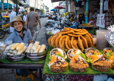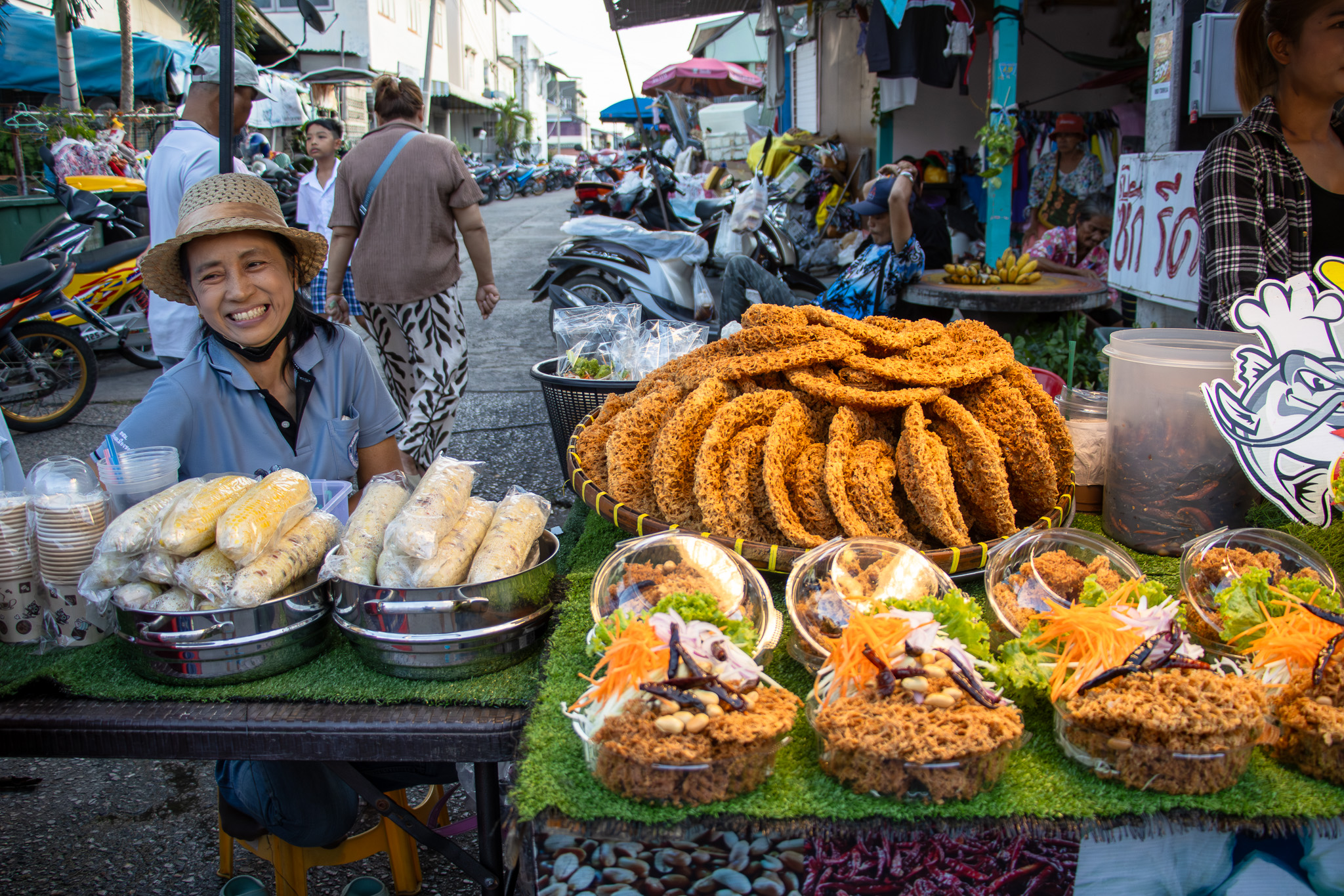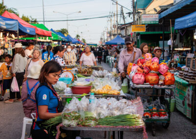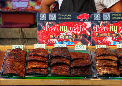 Shoppers will find an array of fresh produce, including vegetables, fruit, pickled items, dried goods, and curries. Many stalls also serve popular street foods such as grilled pork skewers, crispy catfish salad, Isaan sausages, grilled chicken, and fish. Prices are affordable, making it a popular choice for families and budget-conscious visitors.