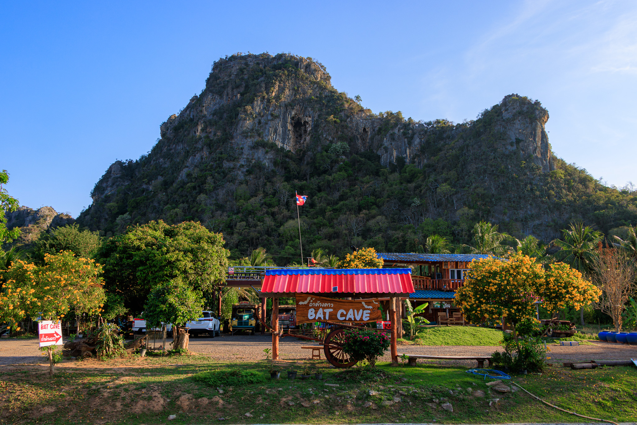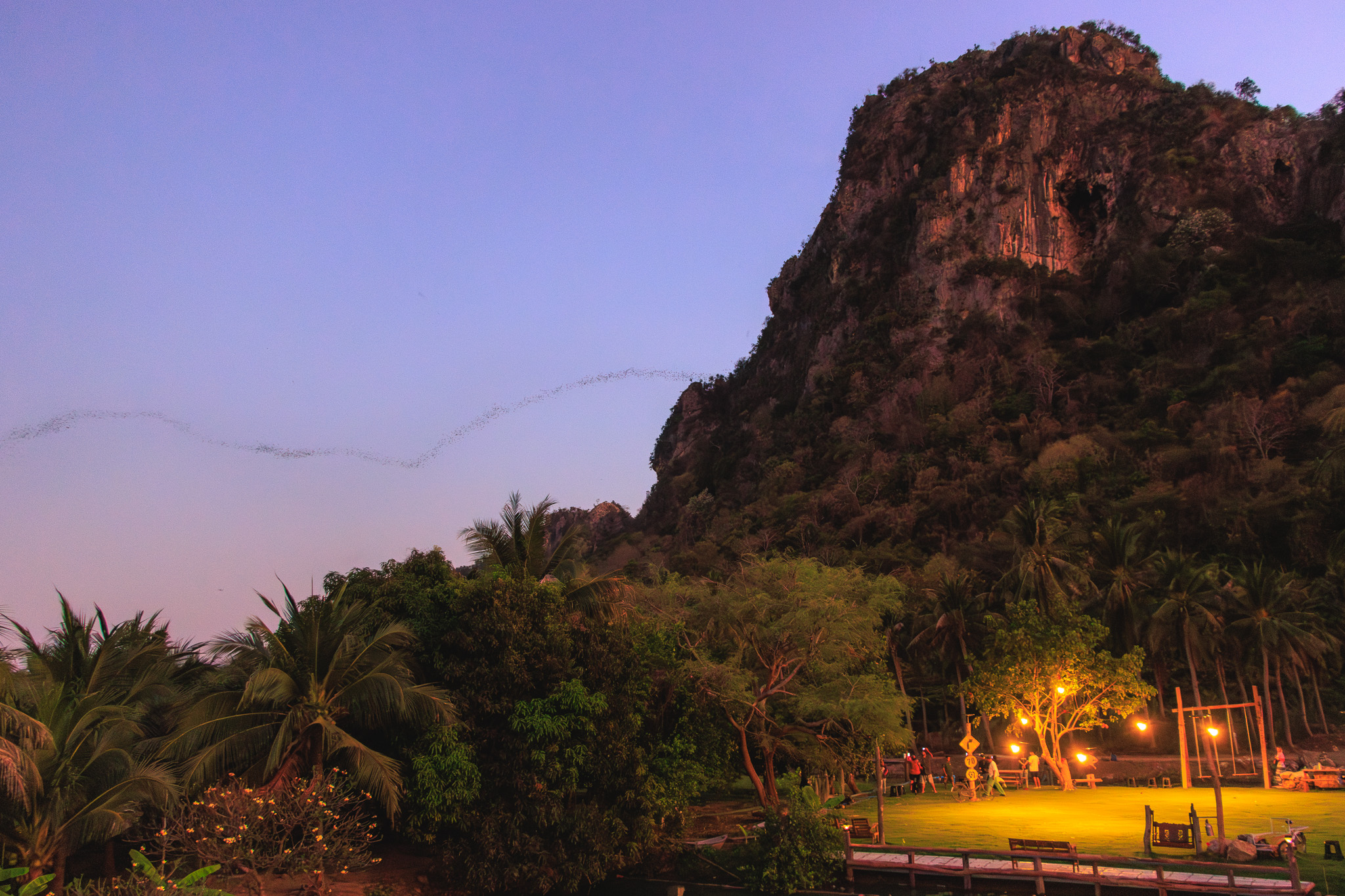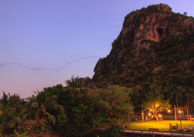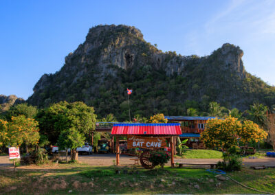 Located in Na Yang Subdistrict, about 12 kilometres from Cha-am Beach, the cave is part of a limestone mountain around 150 metres high. The wide cave opening faces north and provides a nightly show that has been captivating both Thai and international visitors for decades.