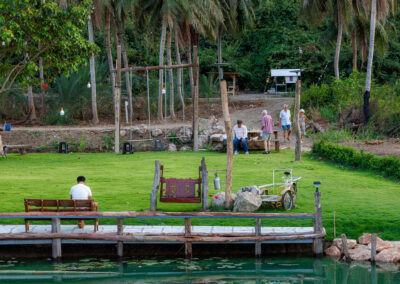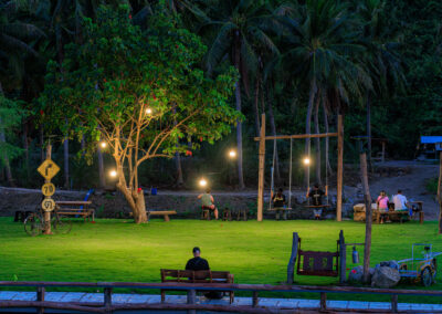 The viewing area is family-run and has a welcoming atmosphere. Elevated seating areas and a garden provide comfortable spots to watch the spectacle, while refreshments are available for purchase. Admission is 50 baht per person, with free entry for children under 10.