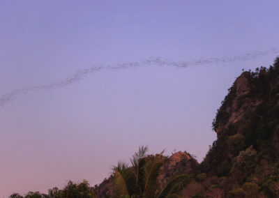 Every evening in Cha-am, a remarkable natural spectacle unfolds at Na Yang Bat Cave. As dusk settles, more than a million wrinkle-lipped bats pour out of the cave in a continuous stream, creating twisting patterns across the sky that stretch for over 10 kilometres.
