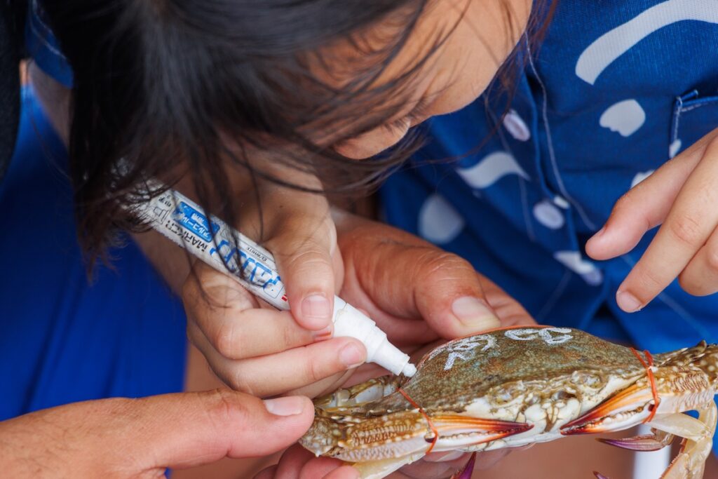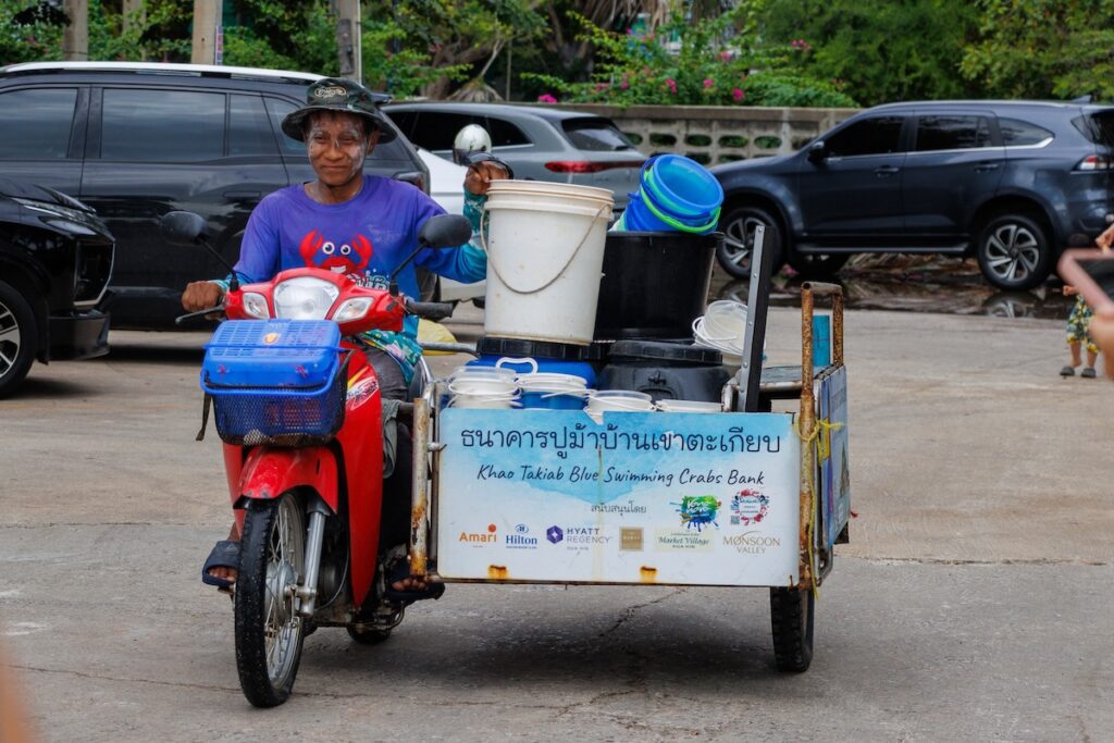 Organised by the Khao Takiab Blue Crab Bank, the activity is rooted in a royal initiative launched during the reign of King Rama IX to protect and replenish populations of blue swimming crabs—a species considered both economically and ecologically important in Thailand. The Department of Fisheries has supported the creation of crab banks around the country, where egg-carrying female crabs are brought in to lay their eggs in controlled tanks before the crabs are sold. Their eggs are then nurtured into larvae and later released into the sea to help rebuild stocks.