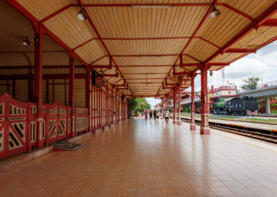 One of the most recognisable features of Hua Hin Railway Station is the Phra Mongkut Klao Pavilion, a four-gabled royal waiting room originally built during the reign of King Vajiravudh (Rama VI). Once known as Sanam Chandra Pavilion, the structure was used by the King during military drills at Sanam Chandra Palace in Nakhon Pathom. It was later relocated to Hua Hin by the State Railway of Thailand in honour of the King’s legacy.