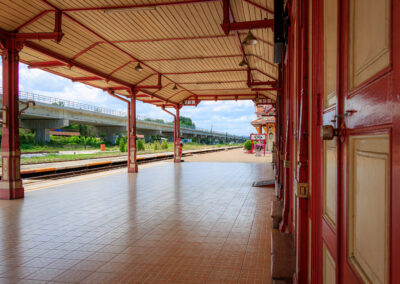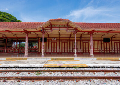 The original station was first built in 1911, but the structure seen today dates back to 1926. Painted in red and cream, it features a striking blend of wood and masonry with Victorian-style architecture, making it one of Thailand’s most distinctive historic railway buildings. The site has served as a railway stop for over a century and holds a special place in the local heritage.