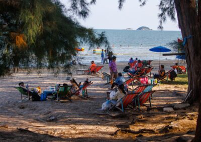 Suan Son Pradipat Beach, often called simply “Suan Son” by locals, or ‘sea pine beach’, is a popular alternative to Hua Hin’s main beach. Located about seven kilometres south of Hua Hin town, the beach is known for its line of pine trees that provide shade along its entire stretch, creating a cooler and more comfortable spot for visitors.