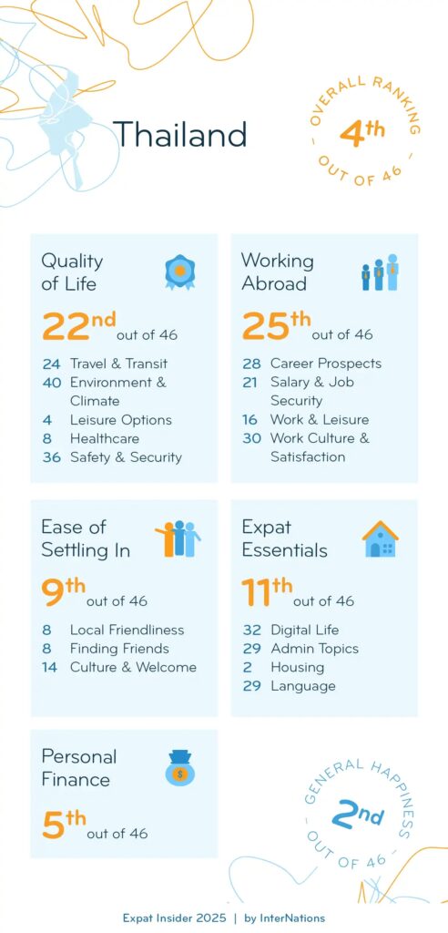 Thailand has been ranked the fourth best country in the world for expats in 2025, according to the latest Expat Insider survey by InterNations.